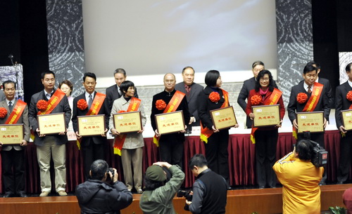 領(lǐng)獎(jiǎng)臺(tái)上黃伯強(qiáng)主席接受頒獎(jiǎng)