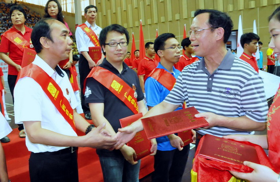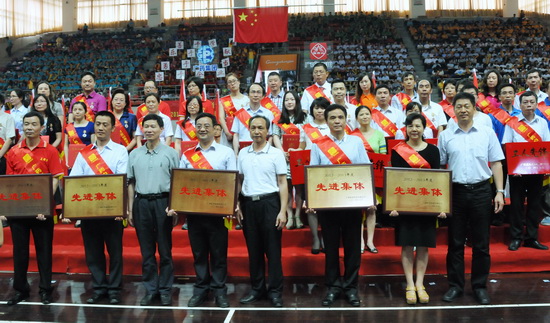 5月26日下午,廣藥集團在二沙島廣東體育館舉行了2014年“五一”表彰暨廣藥白云山職工運動會開幕式,充分展現了廣藥白云山員工團結一致、凝聚力量的集體主義觀念,以及學習先進、建功立業的時代風采和強身健體、英姿颯爽的精神風貌。會上,隆重表彰了王文楚同志等10名“廣藥白云山勞動模范”、李錦云同志等50名“廣藥白云山先進生產工作者”,授予和黃中藥等5個單位“廣藥白云山先進集體”稱號和奇星藥業一車間等10個科室、班組“廣藥白云山工人先鋒號”稱號。